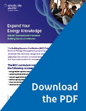 The Building Operator Certification (BOC) Training offered through our Energy Management program provides discounts for your team to complete this nationally recognized certification program. Facilities with BOC graduates have shown increased energy efficiency, reduced operating costs, and improved comfort for occupants.We'll discount your cost by $1,000, which covers over 50% of the price of BOC training.The BOC curriculum includes the following courses:Energy Efficient Operation of Building HVAC SystemsMeasuring and Benchmarking Energy PerformanceCommon Opportunities for Low-Cost Operational ImprovementEfficient Lighting FundamentalsHVAC Controls FundamentalsIndoor Environmental Quality Building Operator Training - accordions Eligibility Facility managers or maintenance providers who service commercial and industrial buildings of all sizes in Atlantic City Electric territory are able to participate in the training course.Participants must be employed in a position of responsibility for the energy management of the facility or have the potential to influence the building’s energy performance.It is highly recommended that participants have a high school diploma or GED, and must have one of the following:Two-plus years of experience working in operations and maintenance of a commercial or institutional facility, ORA minimum of one year of experience working in operations and maintenance of a commercial or institutional facility AND one year of technical college level education in commercial or industrial facilities operations and maintenance, ORTwo-plus years of experience in energy management of commercial, institutional or industrial facilities with a focus on operations and maintenance. How to ApplyGetting started is simple.Apply Online to receive discount code for $1,000 off training costEmail completed applications to ACE.EnergySavings@TRCcompanies.comVisit course website and enrollComplete the training course Building Operator Training 2 - accordions Course Information Cost: $895 per participant after discount code. All materials included!Provider: Pennsylvania College of TechnologyLength: 74 hours (approximately 56 hrs. instructor-led class time, 18 hrs. out-of-class study)Location: Virtual, live instructor led via ZoomAchievement Type: Training Certificate of Completion (TCOC). Receipt of TCOC is predicated on receiving a 70% or higher on all eight end of class, open-book quizzes, completion of all five BOC Level I project assignments, and attendance of all classes as scheduled below. Participant may miss up to one full day of class time; absences beyond the limit must be made up by watching recorded sessions through the online learner portal. (Recipients of a Level I TCOC may register to take the Certification Exam. Additional fees apply). Have Questions? Let us know.If you have any questions about eligibility, just contact us.Email: ace.energysavings@trccompanies.comPhone: 833.ACE.PAYS (833.223.7297)